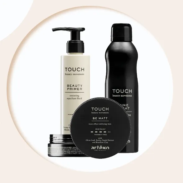 Das Styling Sortiment von Artègo umfasst die Touch Produkte, die aus Primern, Intensivbehandlungen und phyto-technologischen Stylingprodukten besteht. Die Produkte stylen aber nicht nur, sondern pflegen auch. Sie versorgen das Haar mit wertvoller Feuchtigkeit und stellen sicher, dass das Haar vor Schäden bewahrt wird.