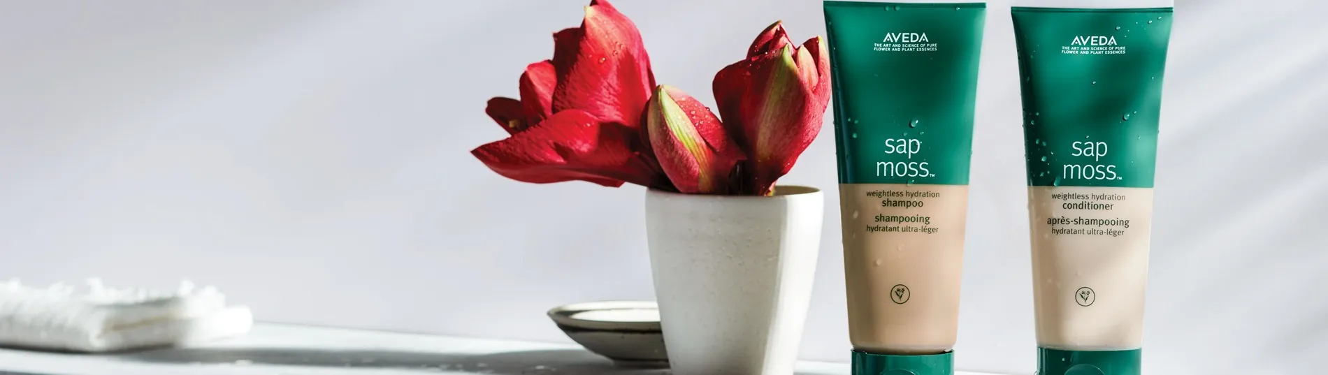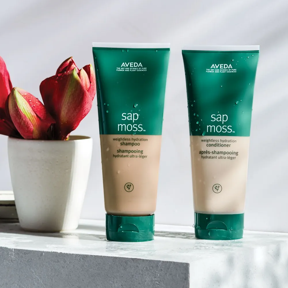 Sap Moss: Entdecke die verborgenen Kräfte von wertvollen Pflanzenextrakten und Moos in den Haarpflegeprodukten von Aveda.