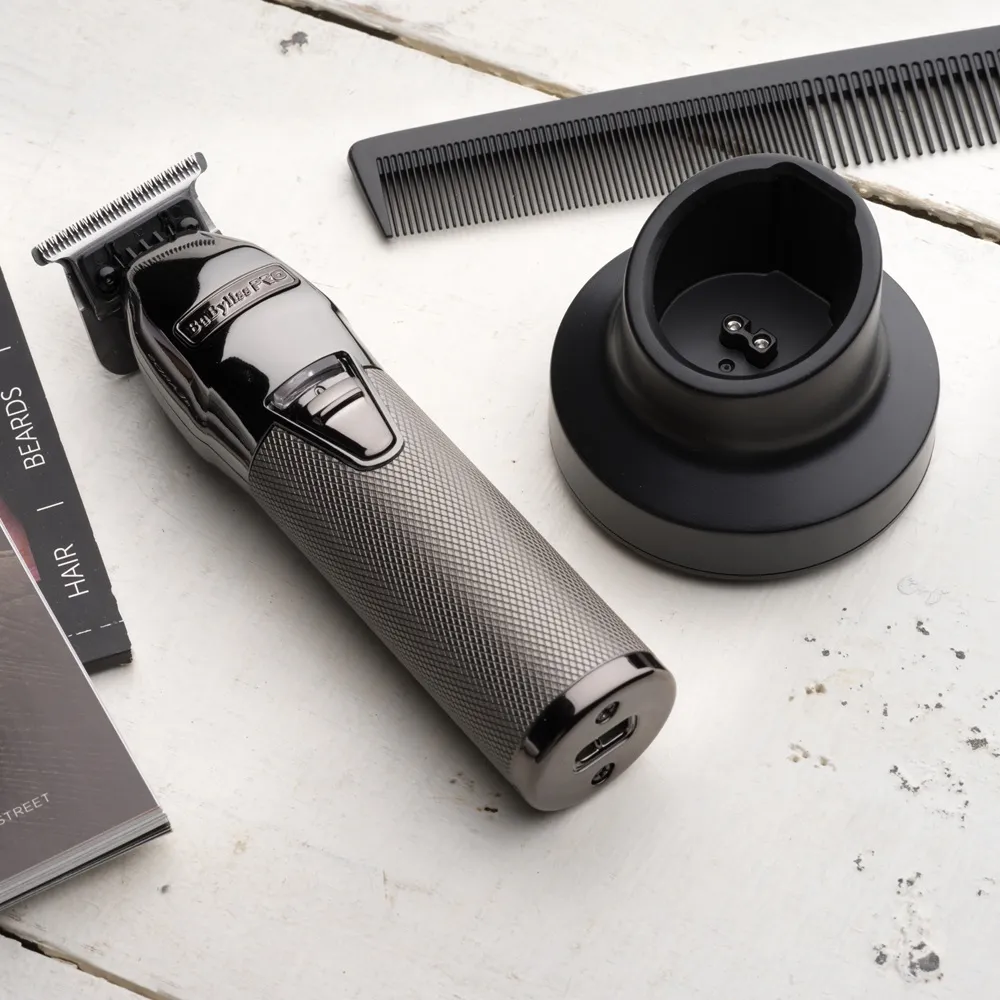 Der BaBylissPRO 4Artist FX3 Trimmer ist mit einem drehmomentstarken, bürstenlosen Motor ausgestatt. Mit der DLC/Titan-Nullspalt-T-Klinge mit 360-Grad-Sicht ist das Gerät das perfekte Werkzeug für alle Detailarbeiten. Der Lithium-Polymer-Akku hat einen Laufzeit von 4 Stunden. Der Trimmer kann aber auch mit Kabel betrieben werden. Das schlanke, ergonomische Design macht das Gerät zum echten Hingucker.