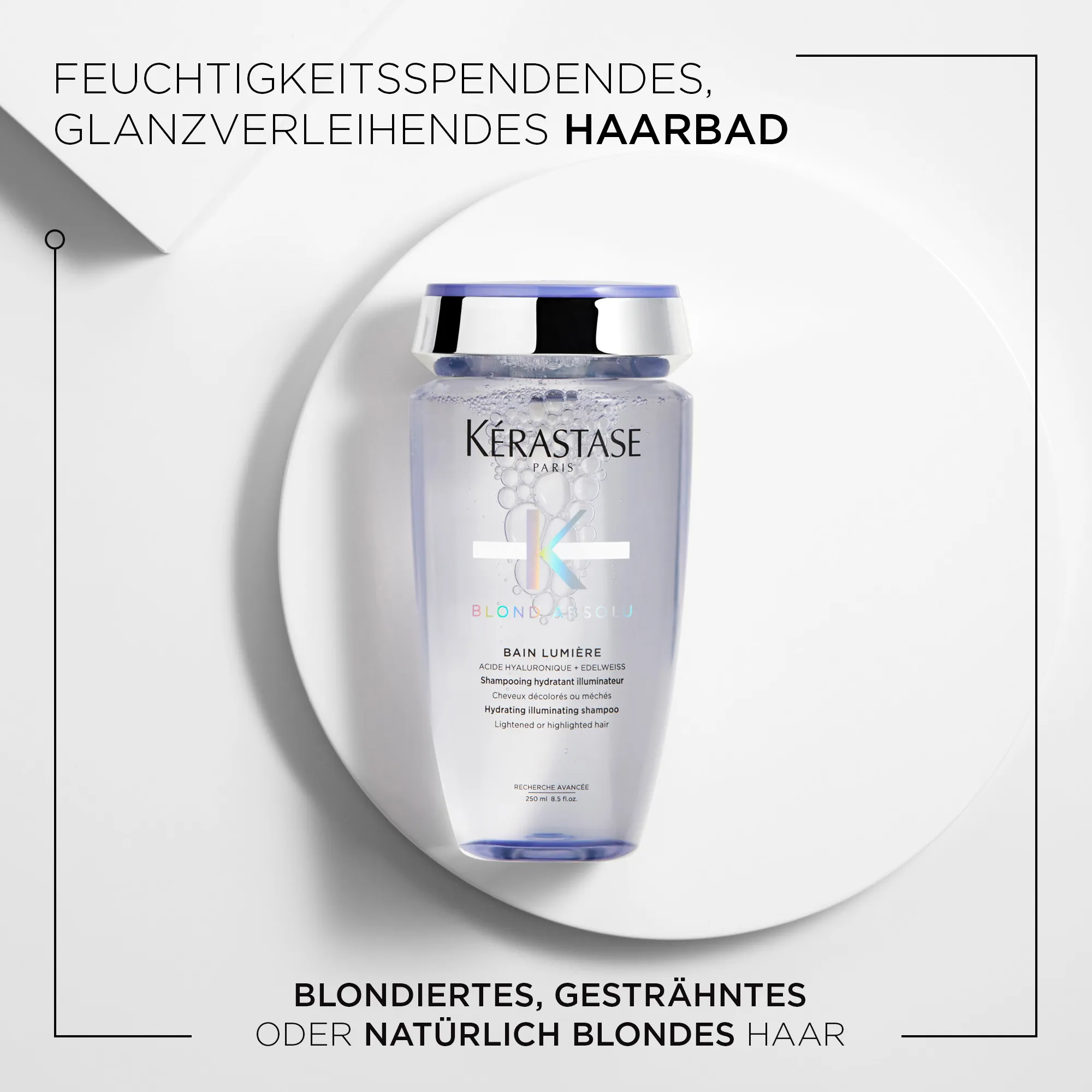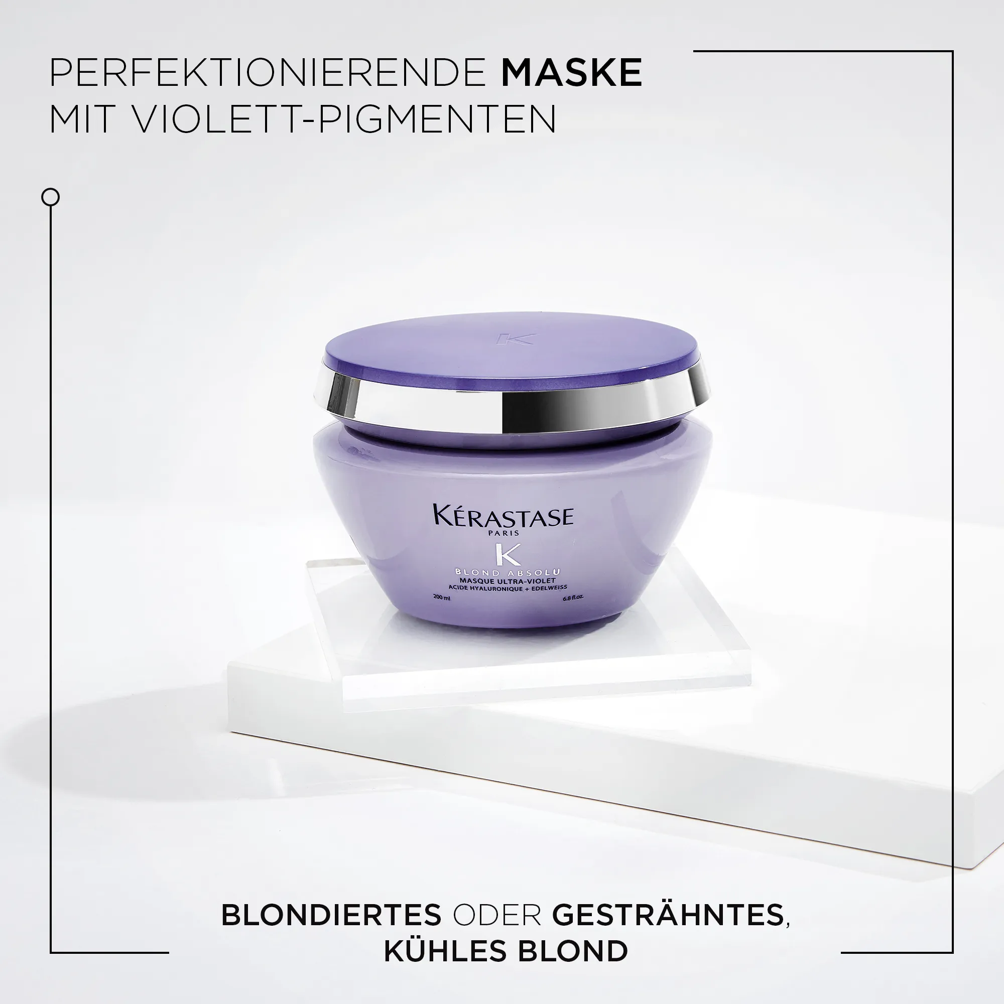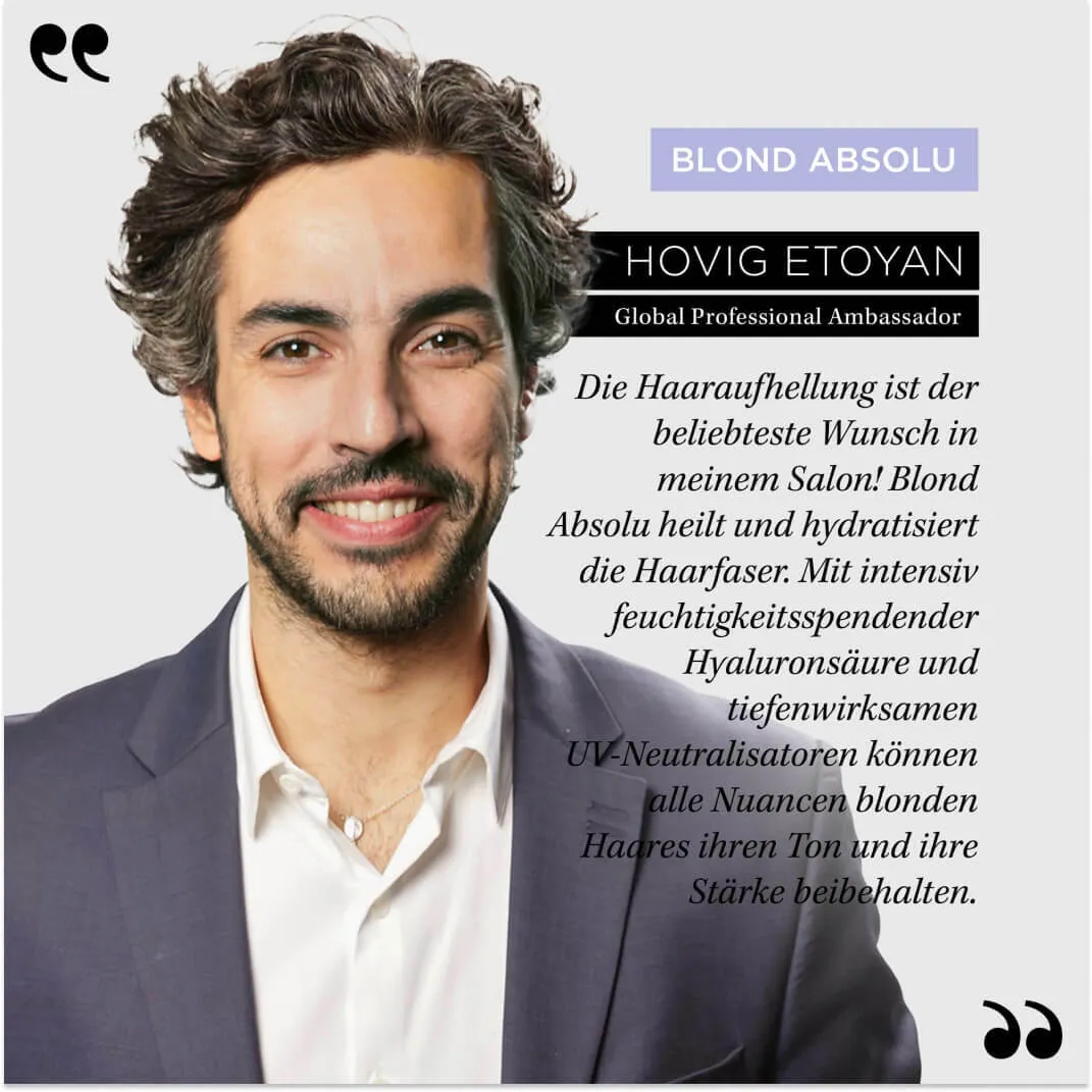 Die Blond Absolu Produkte enthalten hochkonzentrierte Hyaluronsäure für eine gestärkte Haarfaser, Edelweiß-Extrakt für verbesserte Widerstandskraft und ultraviolette Neutralisatoren gegen gelbe und orange Untertöne.