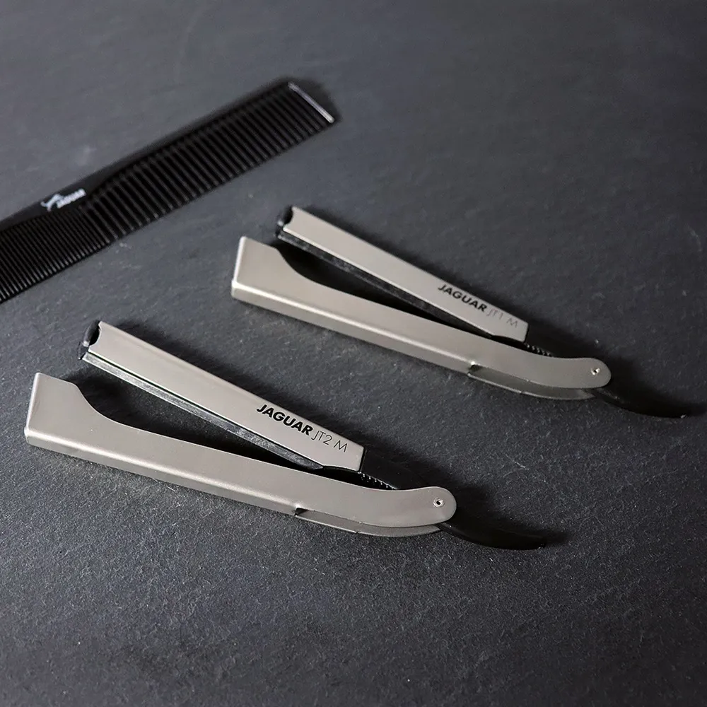 Die Rasiermesser von Jaguar Solingen sind hochwertige Arbeitsgeräte, die in professionellen Friseursalons zu finden sind. Während normale Rasiermesser regelmäßig abgezogen und geschärft werden müssen, werden von Jaguar Solingen nur einfache Wechselklingen-Rasiermesser hergestellt.