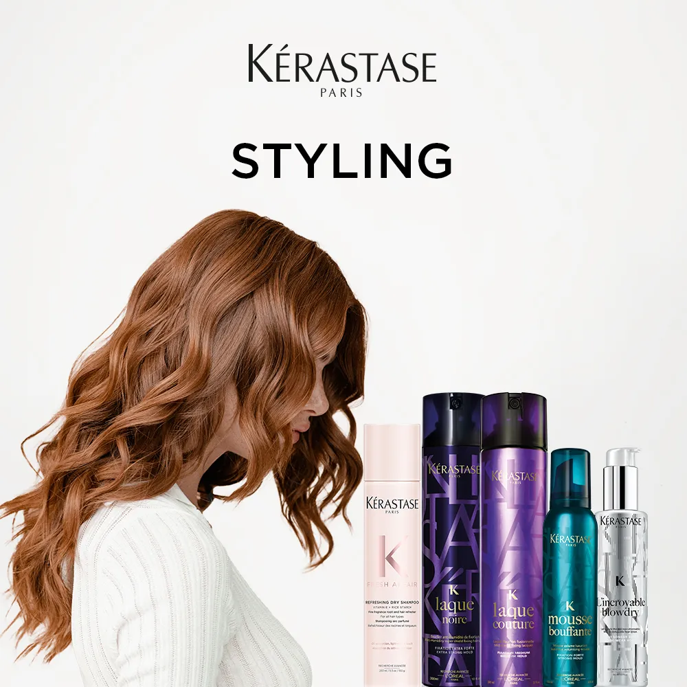 Die personalisierten Stylingprodukte von Kerastase sind einzigartig in ihrer perfekten Balance zwischen Halt und absoluter Bewegungsfreiheit.