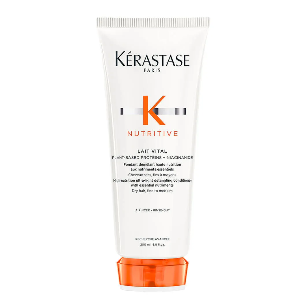 Kérastase Lait Vital ist ein leichter Conditioner für normales bis leicht trockenes Haar. Er gleicht beanspruchte Stellen in der Haaroberfläche gezielt aus. Pflanzenbasiserte Proteine udn Niacinamide pflegen die trockene Haarfaser. Das Resultat ist vitales, glänzendes und geschmeidiges Haar. Anwendungsempfehlung Kérastase Nutritive Lait VitalDen Conditioner nach der Haarwäsche ins feuchte Haar partienweise einarbeiten. 2-3 Minuten einwirken lassen und gut ausspülen.