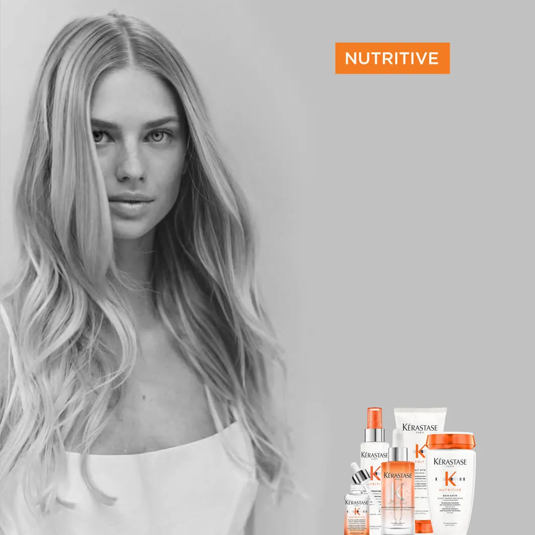 Die Nutritive Familie von Kérastase zielt auf typische Symptome von trockenem Haar und Nährstoffmangel ab und verleiht dem Haar mit einer abgestimmten Pflegeroutine je nach Trockenheitsgrad Geschmeidigkeit, Glanz und ein unvergleichlich sanftes Haargefühl. Nutritive bildet die Basis zur Behandlung von trockenem Haar. Die Pflegeserie enthält maßgeschneiderte Produkte für jeden Haartyp. Vom Kérastase Nutritive Shampoo über Conditioner und Maske bis hin zu Pflegemilch und Nachtserum, einem Spitzenserum und dem universellen Hitzeschutz sind alle Produkte auf die Bedürfnisse von trockenem Haar abgestimmt. Die hochwertigen Pflegeprodukte verhelfen zu Geschmeidigkeit, Schwung und Glanz. Die Haare fühlen sich nach der Anwendung frischer und gesünder an.