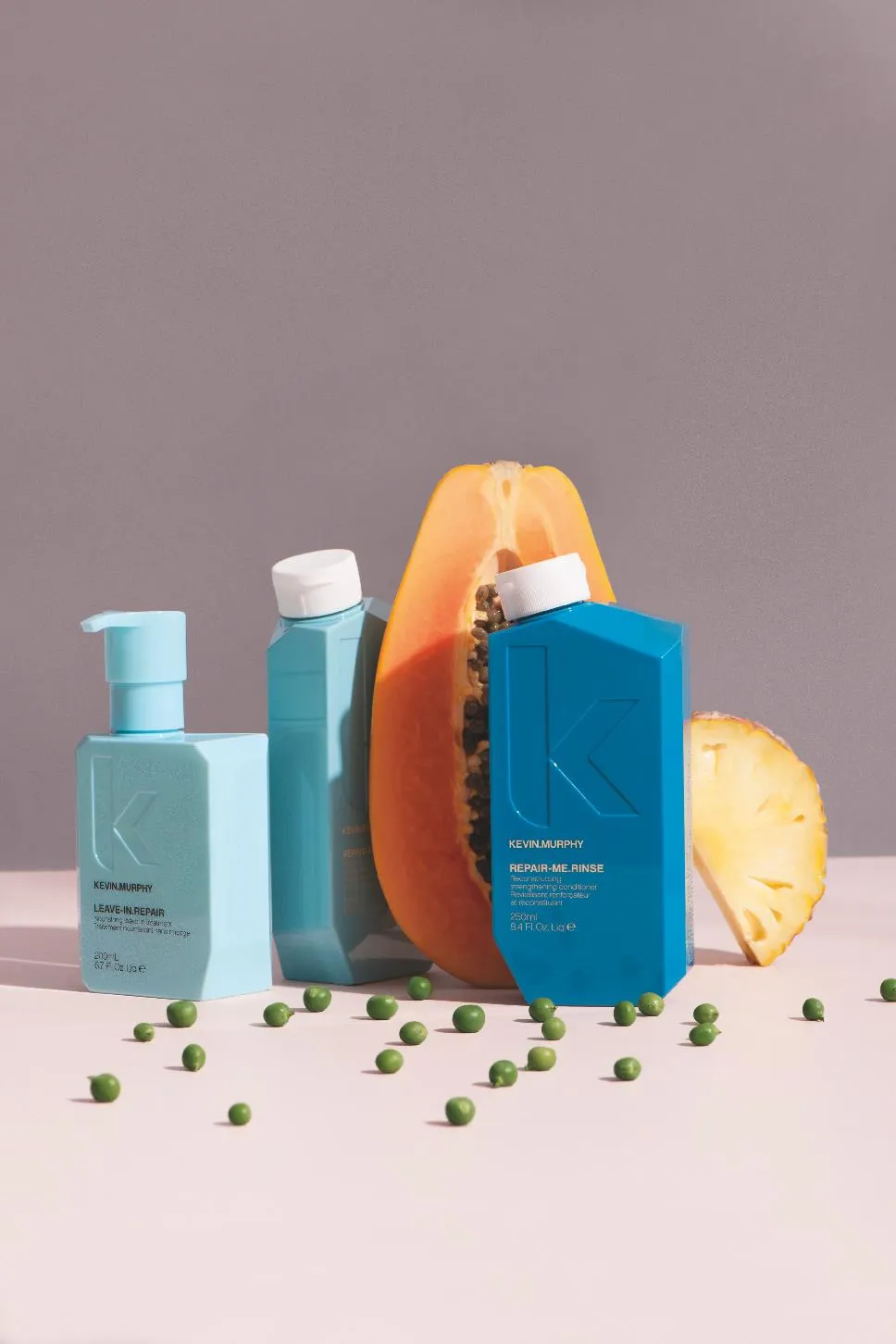 Die Produkte aus der Kevin.Murphy Repair.Me Serie wurden für den Aufbau von strapaziertem Haar entwickelt.