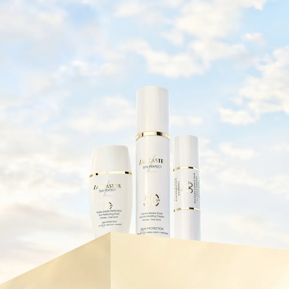 Lancaster Sun Perfect ist die innovative Sonnenpflege, die umfassenden Sonnenschutz mit hochwirksamer Hautpflege kombiniert. 4 effektive Sonnenpflegeprodukte für das Gesicht und das Dekolleté bieten luxuriösen Sonnenschutz, der Falten und Pigmentflecken entgegen wirkt und zugleich die Strahlkraft der Haut intensiviert.
