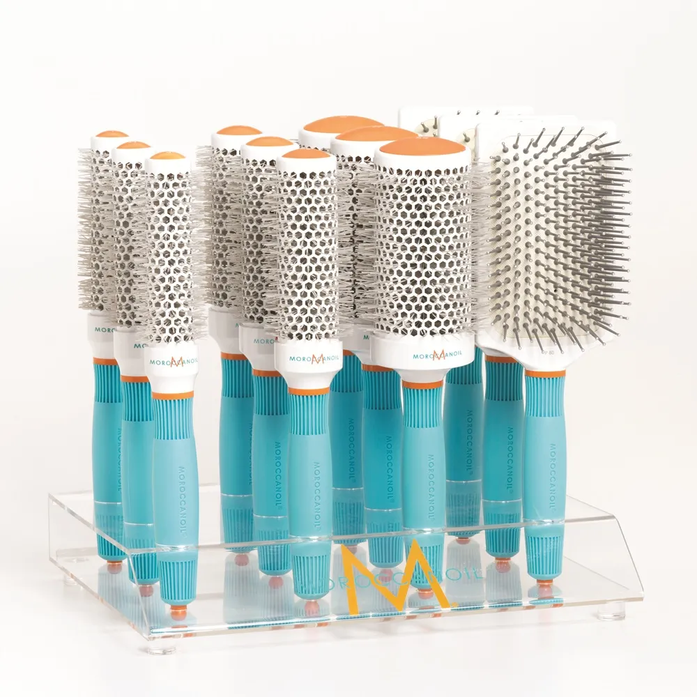 Die Moroccanoil Bürsten gibt es in verschiedenen Varianten: Die Rundbürsten zum Föhnen sind in mehreren Größen erhältlich. Kleinere Rundbürsten sind für kurze, feine Haare und größere Rundbürsten sind für lange, dicke Haare. Weiters gibt es noch die multifunktionelle Paddle Brush und die Toupierbürste. Bei den Borsten wird zwischen ionisierten Nylonborsten und schonenden Wildschweinborsten unterschieden.