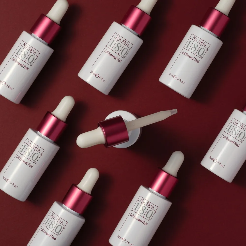 Das Nu Skin 180° Cell Renewal Fluid mit 15 Prozent Polyhydroxysäure verbessert die natürliche Zellregeneration und verfeinert die Poren. Feine Linien und Falten werden gemindert und die Haut erstrahlt wieder.