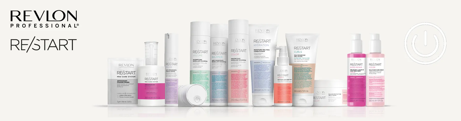 Revlon Professional RE/START ist eine Haarpflegelinie, die im Salon und Zuhause angewendet werden kann. Die Produkte sorgen für gesund aussehendes Haar.
