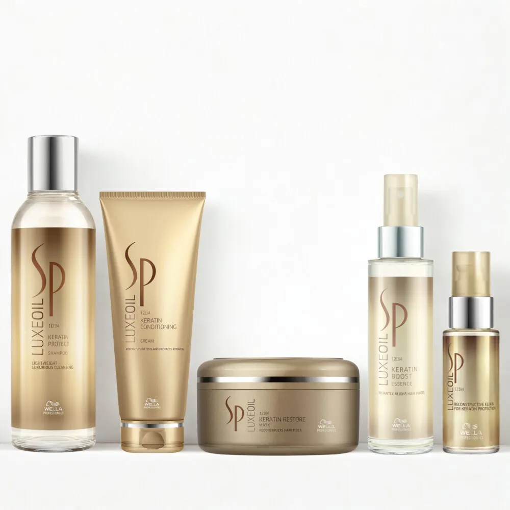 SP Luxeoil ist die Luxuspflegelinie für alle Haartypen. Die Luxeoil Serie baut die Haarstruktur mit wertvollem Arganöl, Mandelöl und Jojobaöl auf. Die Keratinschicht des Haares wird geschützt, das Haar sieht umgehend gesünder und gepflegter aus.