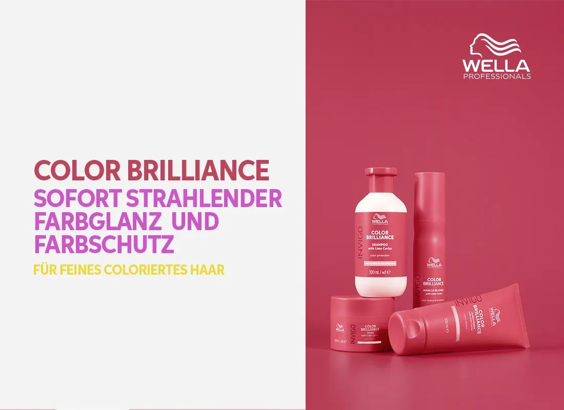 Wella Invigo Color Brilliance ist eine äußerst wirkungsvolle Kombination aus Produkten, die die Farbbrillanz von coloriertem Haar schützen und erhalten. Die Serie besteht aus Wella Brilliance Shampoos, Conditionern und Haarmasken für feines und kräftiges Haar, sowie aus einem Leave-In Spray, einer Conditioning Mousse und einem Booster.