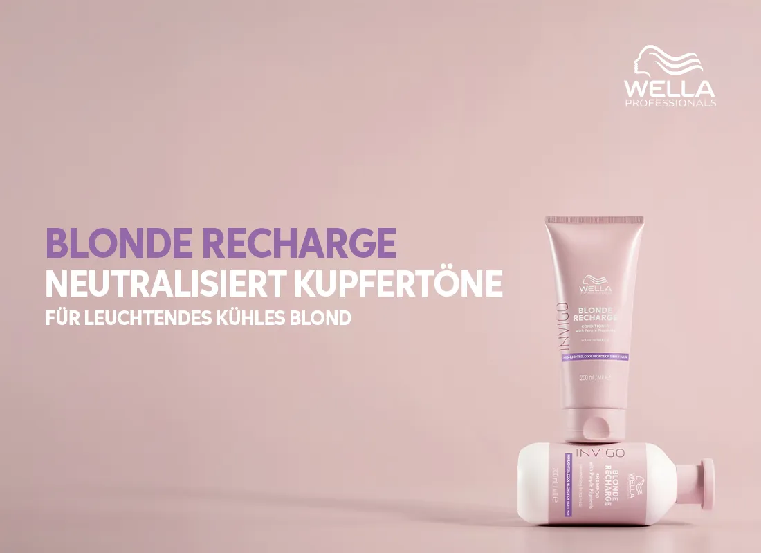Mit den farbaufrischenden Invigo Blonde Recharge Produkten beweist Wella einmal mehr das Verständnis für perfekte Haarfarbe. Die Produkte wirken gegen Verblassen, Auswaschen und enthalten farbauffrischende Pigmente.